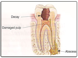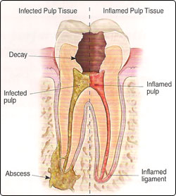 Signs of pulp damage include pain, prolonged sensitivity to heat or cold, discoloration of the tooth and swelling and tenderness in the nearby gums. Sometimes, there are no symptoms.