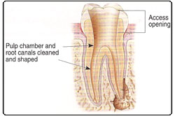 Endodontic ProcedureEndodontic treatment can often be performed in one or two visits and involves the following steps: